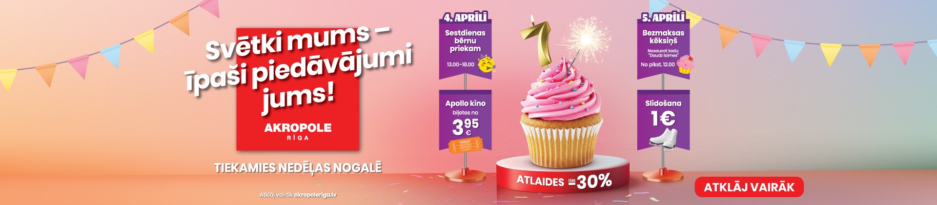 Aicinām uz svinībām iepirkšanās un izklaides centrā “AKROPOLE Rīga”, šajās svētku brīvdienās Jūs sagaida īpaši piedāvājumi, pārsteigumi un svētku atmosfēra visai ģimenei!