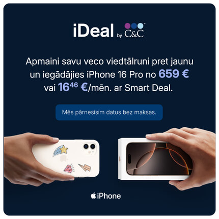 Vēlies jaunu iPhone? Apmaini savu veco viedtālruni pret jaunu iPhone un saņem papildu atlaidi līdz pat 100 eur! iDeal veikala eksperti noteiks Tava viedtālruņa vērtību, kuru varēsi izmantot kā atlaidi jauna iPhone iegādei.