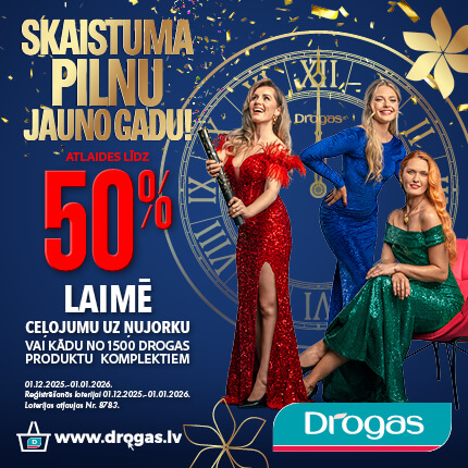 Veikalos Drogas atlaides līdz 50% un svētku loterija. Laimē kādu no dāvanu komplektiem vai ceļojumu uz Ņujorku!